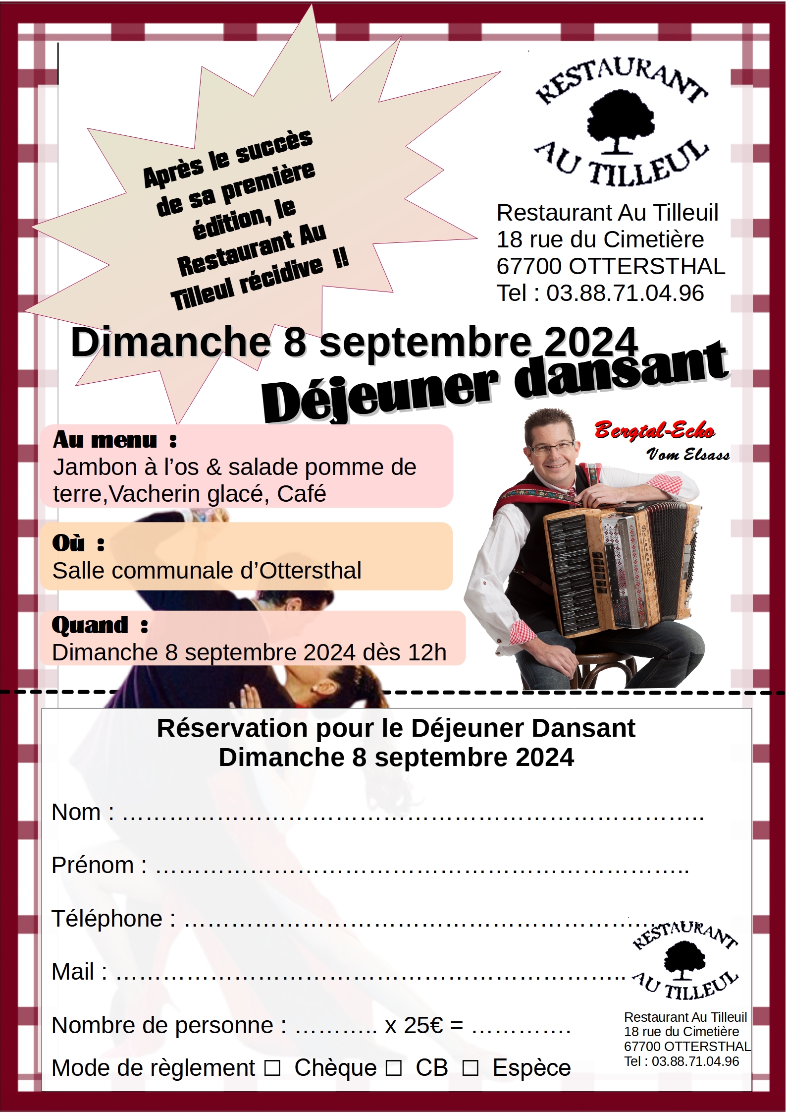 Dimanche 08 Septembre 2024 déjeuner Dansant Acte2 avec L'Orchestre BERGTHAL-ECHO vom elsass
